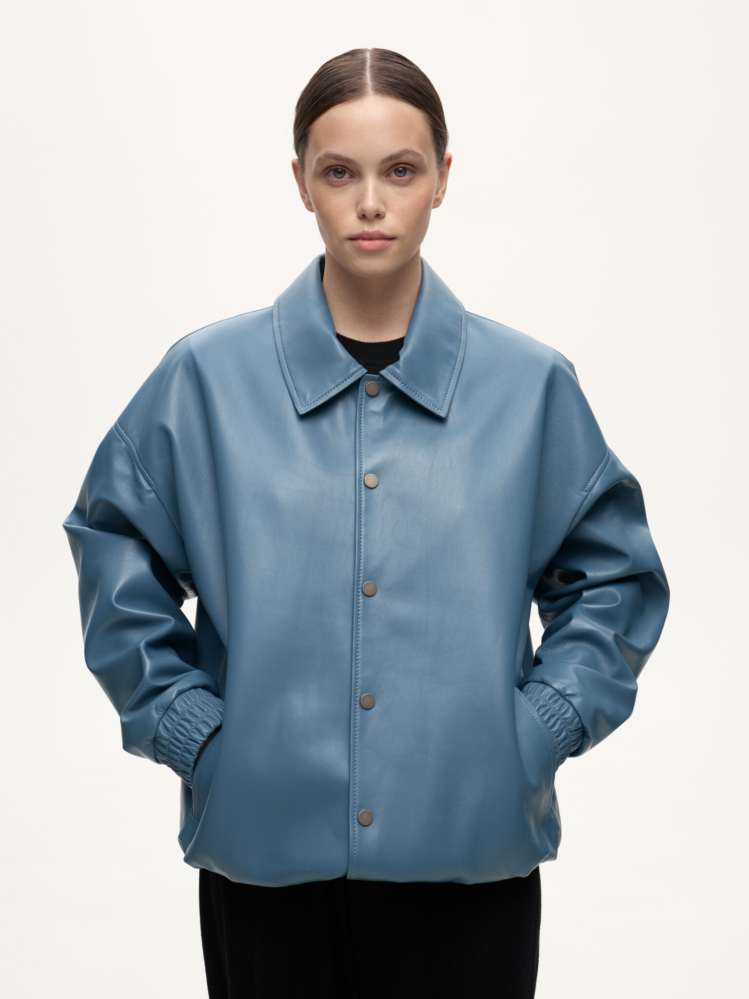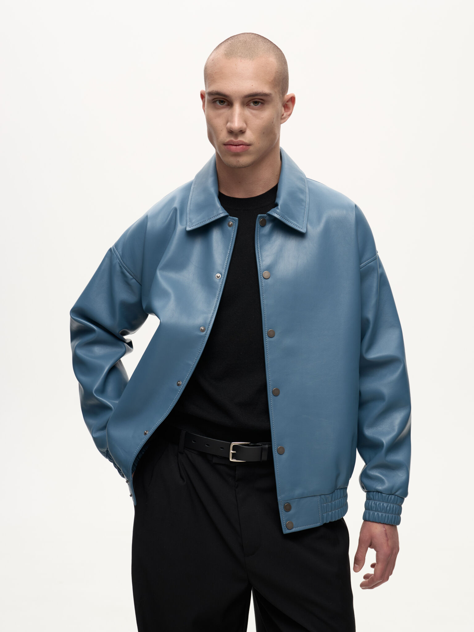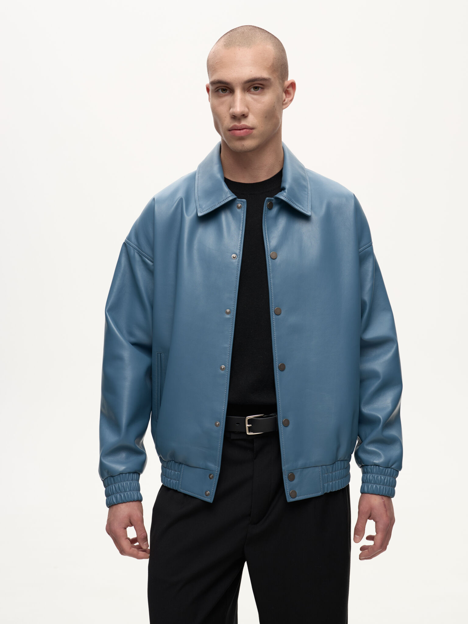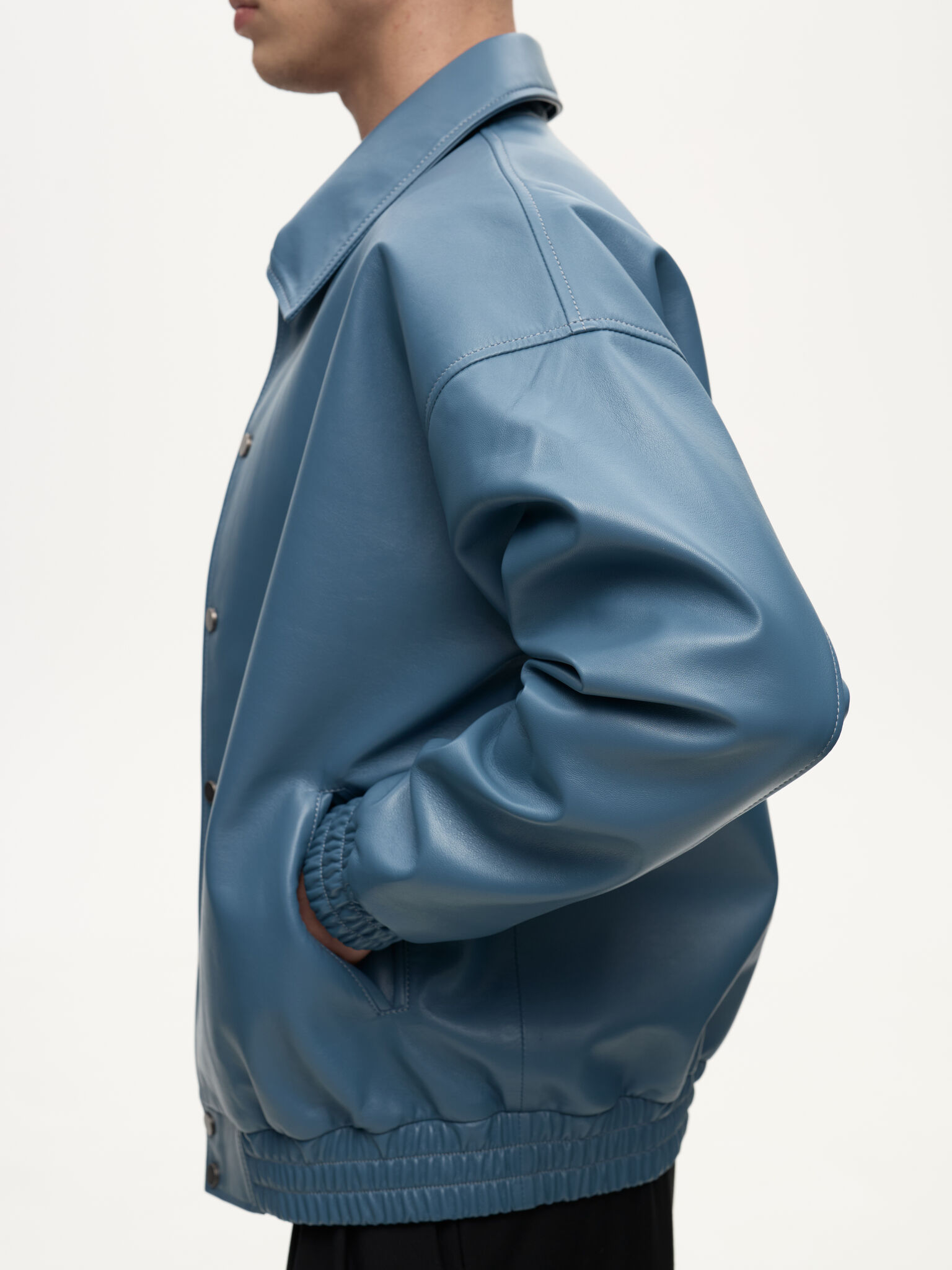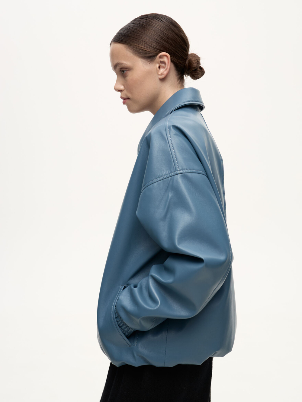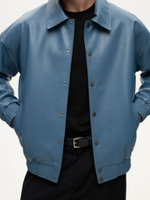 Бомбер Dean — отсылка к духу студенческих кампусов и киноэпохи Джеймса Дина. Классический силуэт кожаного бомбера в мягком голубом оттенке Stone сохраняет свободную унисекс-посадку и легко вписывается в современный гардероб. Лёгкая ностальгия по фильмам прошлого сочетается здесь с актуальной простотой и повседневной элегантностью.