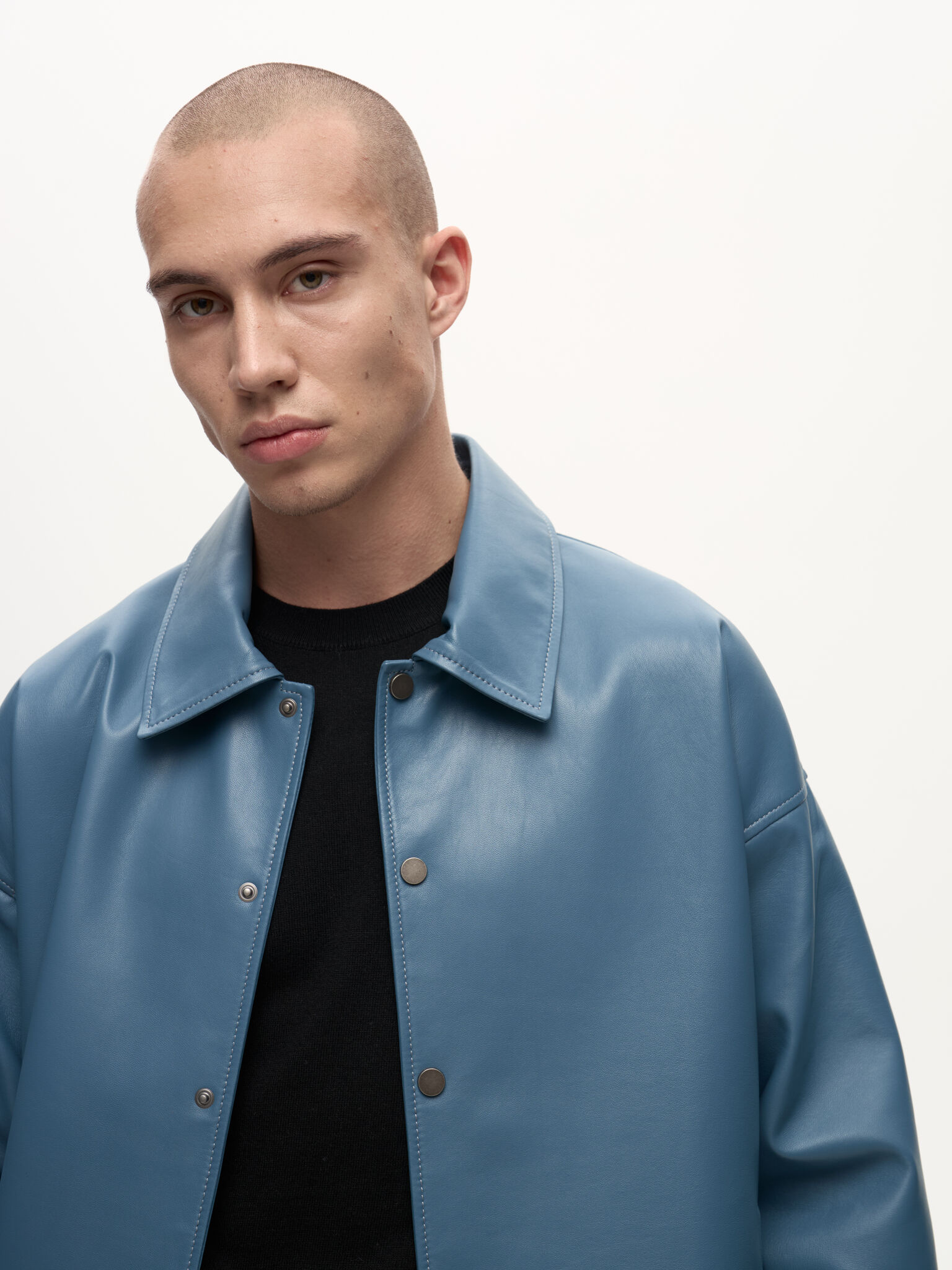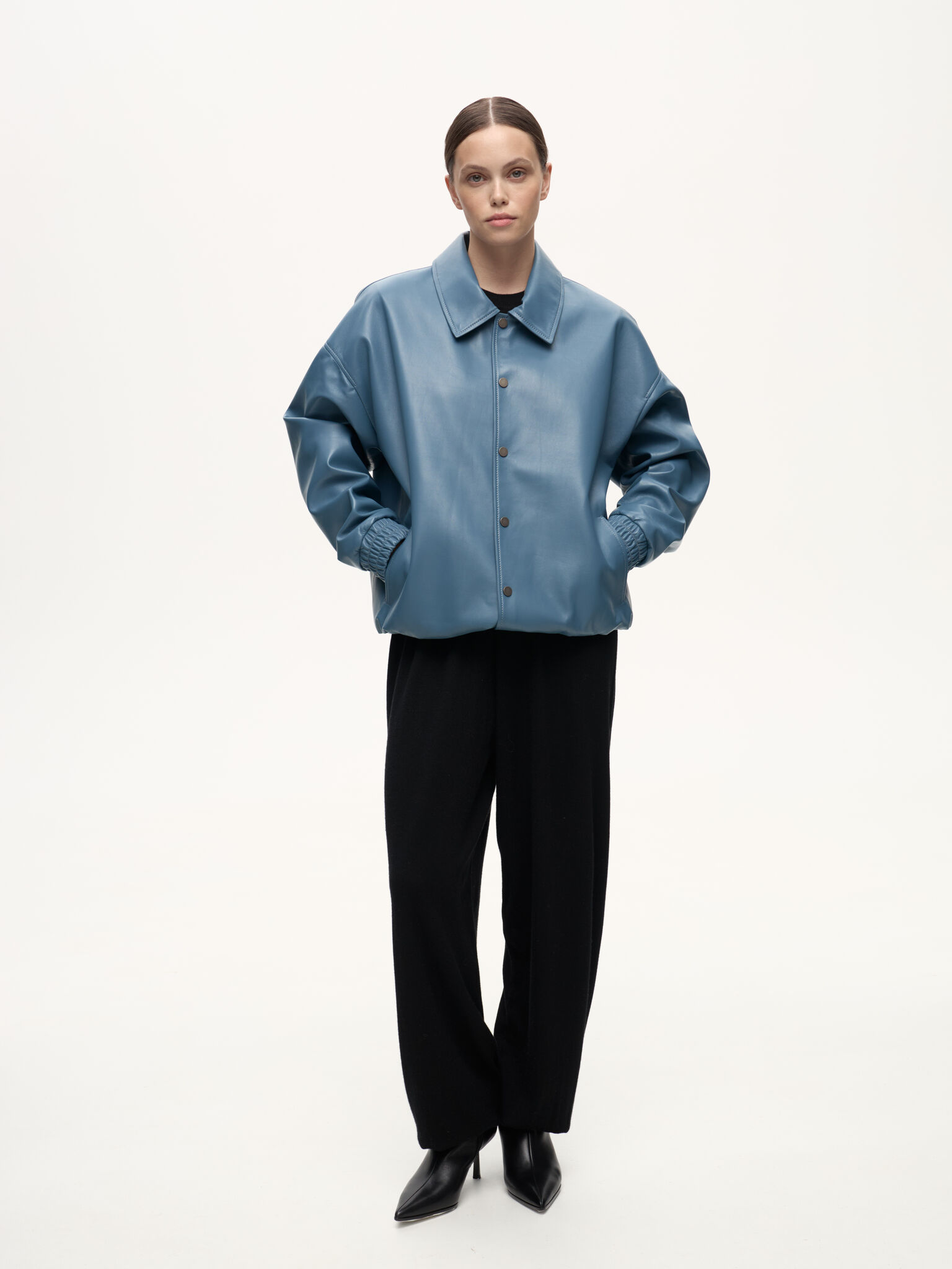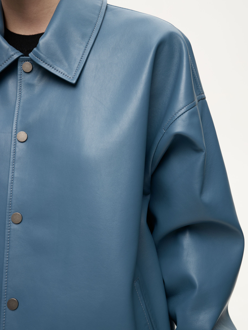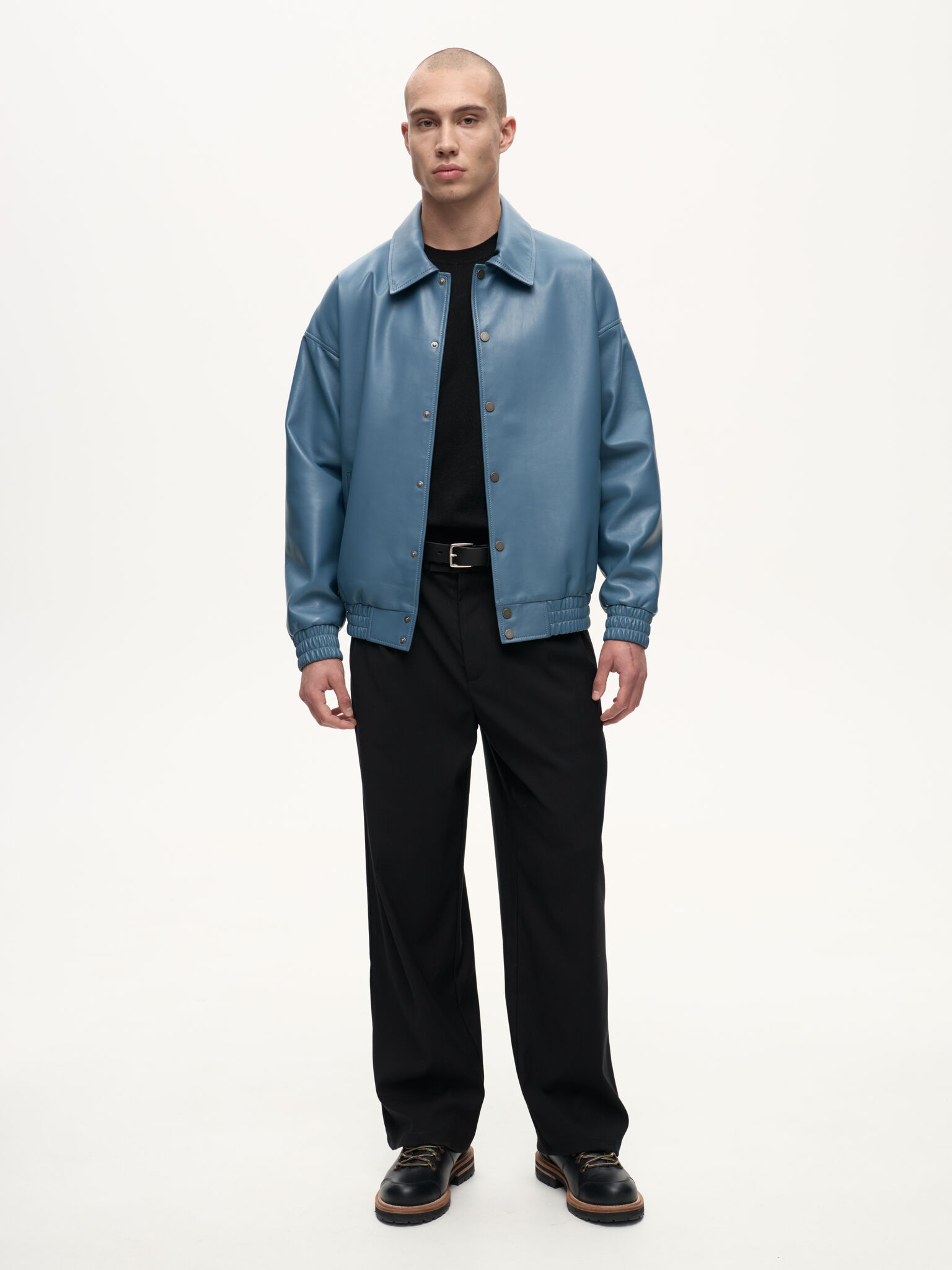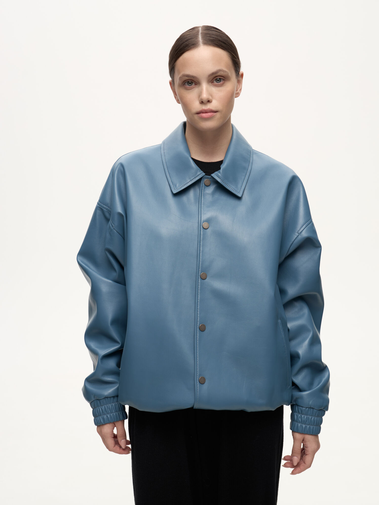 Бомбер Dean — отсылка к духу студенческих кампусов и киноэпохи Джеймса Дина. Классический силуэт кожаного бомбера в мягком голубом оттенке Stone сохраняет свободную унисекс-посадку и легко вписывается в современный гардероб. Лёгкая ностальгия по фильмам прошлого сочетается здесь с актуальной простотой и повседневной элегантностью.