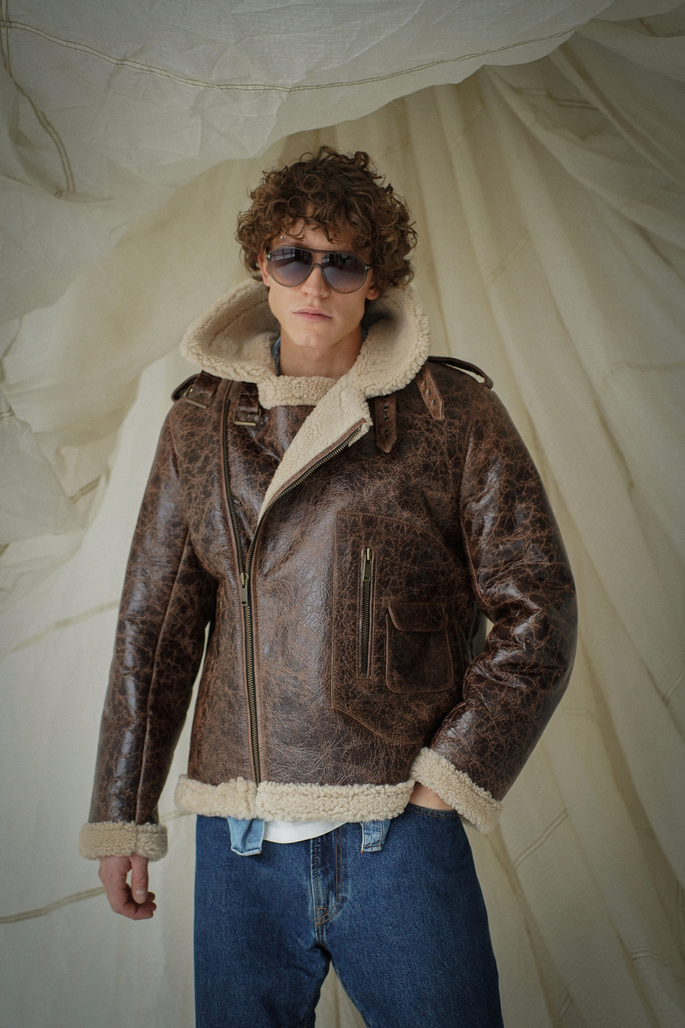 Дубленка-авиатор — вневременный стиль, вдохновленный летчиками-авиаторами. Изделие отличает свободный силуэт и характерный карман, в котором раньше летчики хранили карты местности, чтобы не отрываясь от штурвала, придерживаться верного ориентира.
