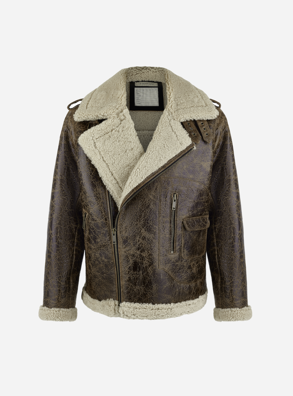 Высокий ворот с функциональными ремешками защитит от ветра и холода. Для пошива изделия мы использовали плотную мягкую овчину. Изнаночная фактурная сторона с плотными завитками хорошо сохраняет тепло, а лицевая кожаная отталкивает влагу и защищает от ветра.