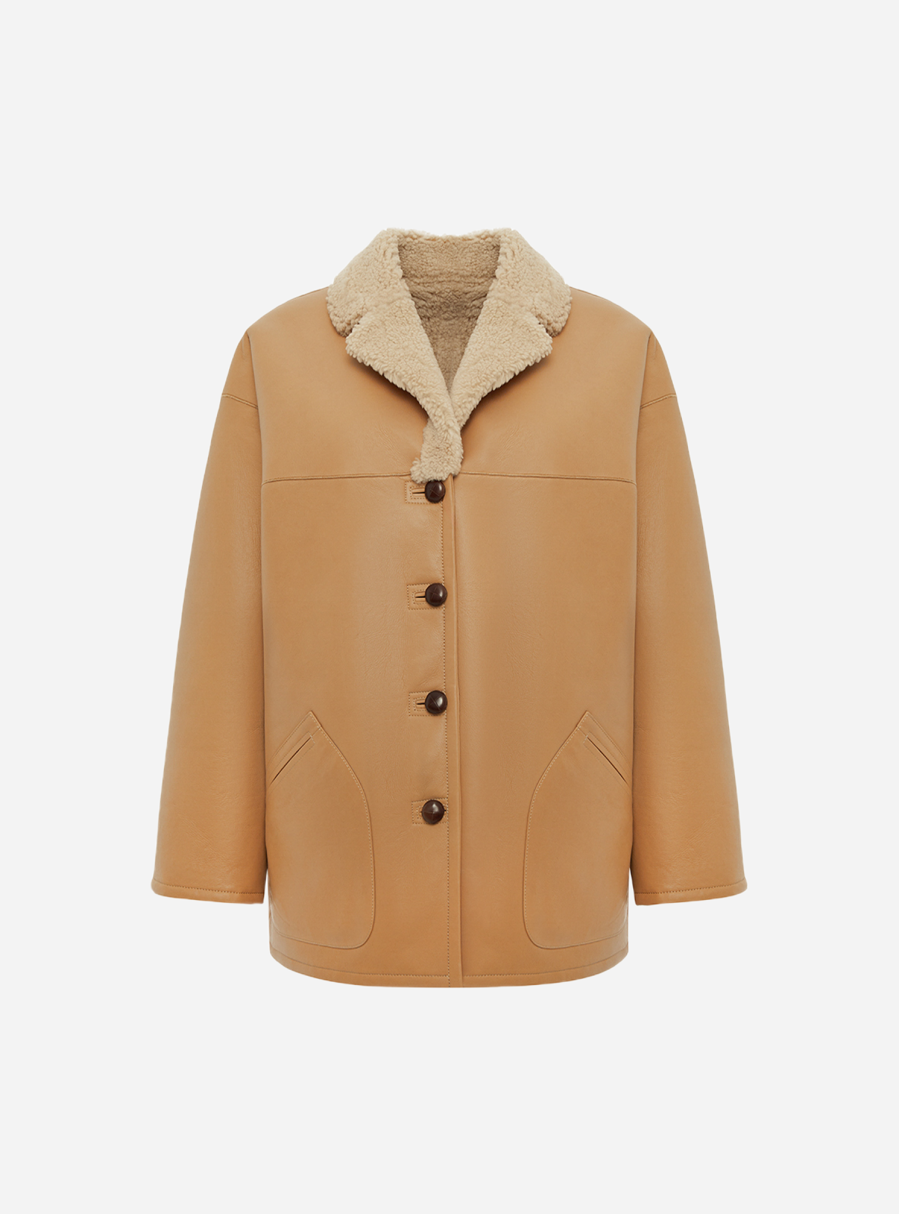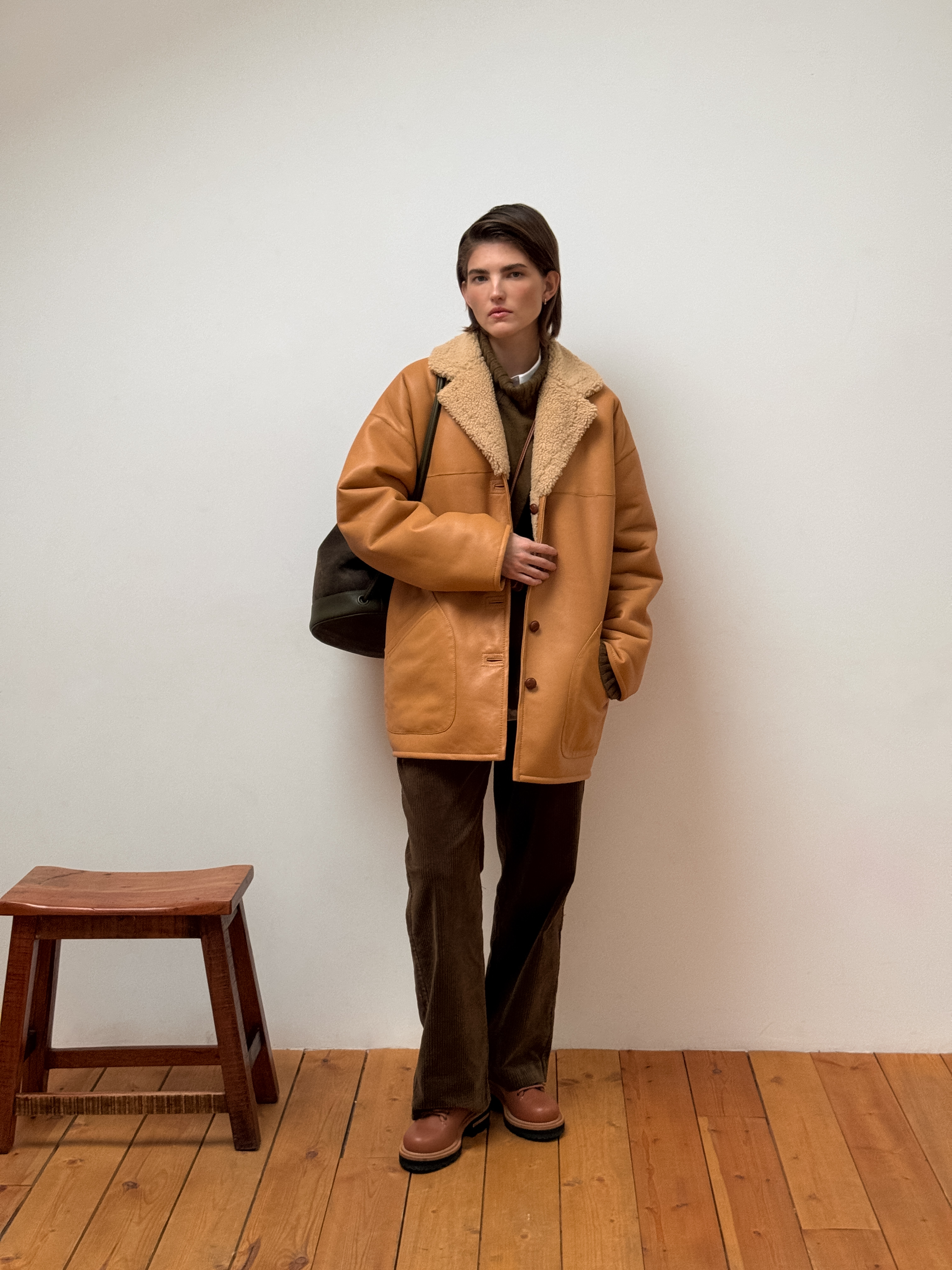Прямой, мягкий и умеренно свободный силуэт со средней длиной позволяет сочетать изделие с любым низом. Меняйте настроение образа, переворачивая изделие на кожаную или меховую сторону.