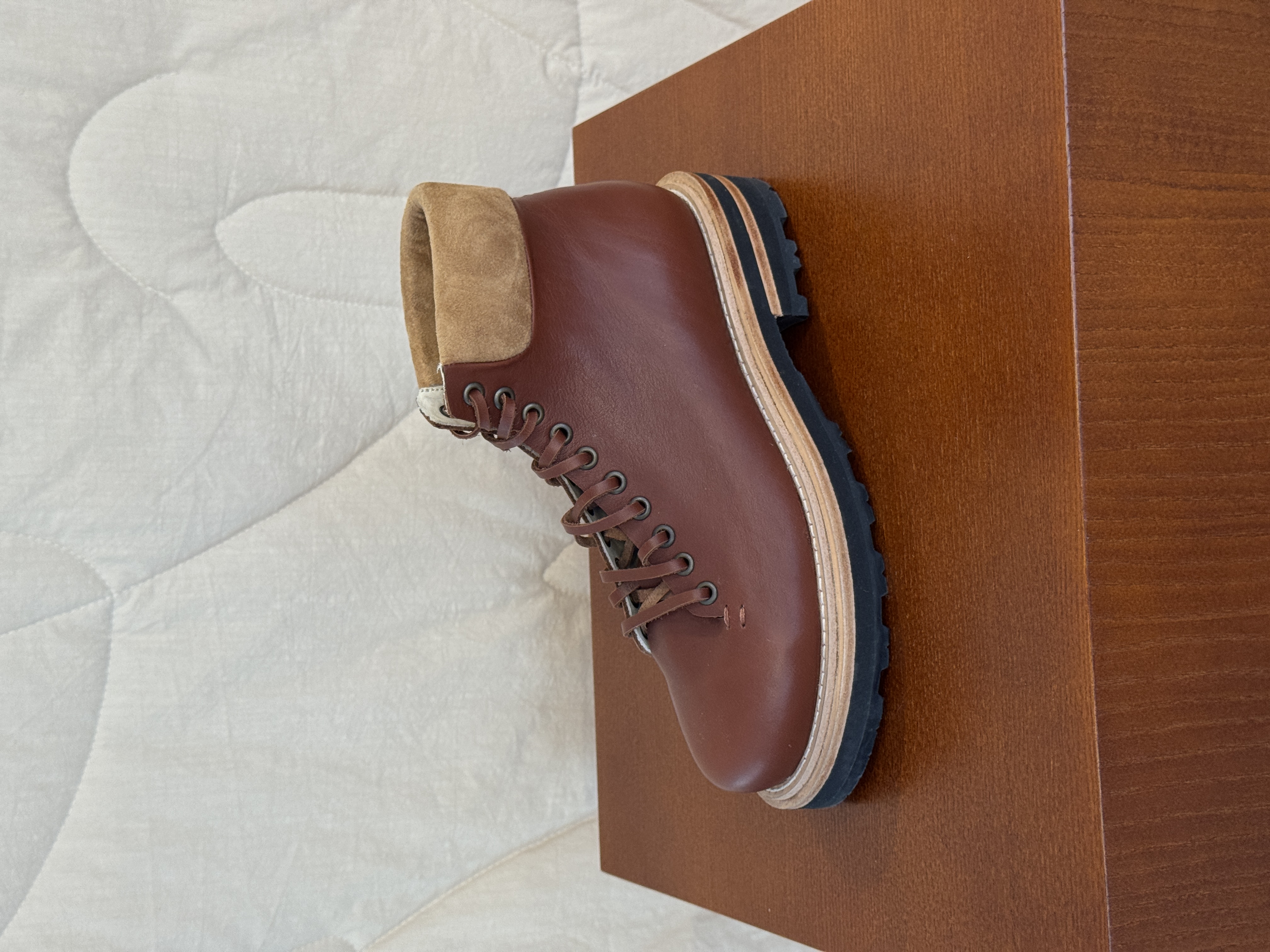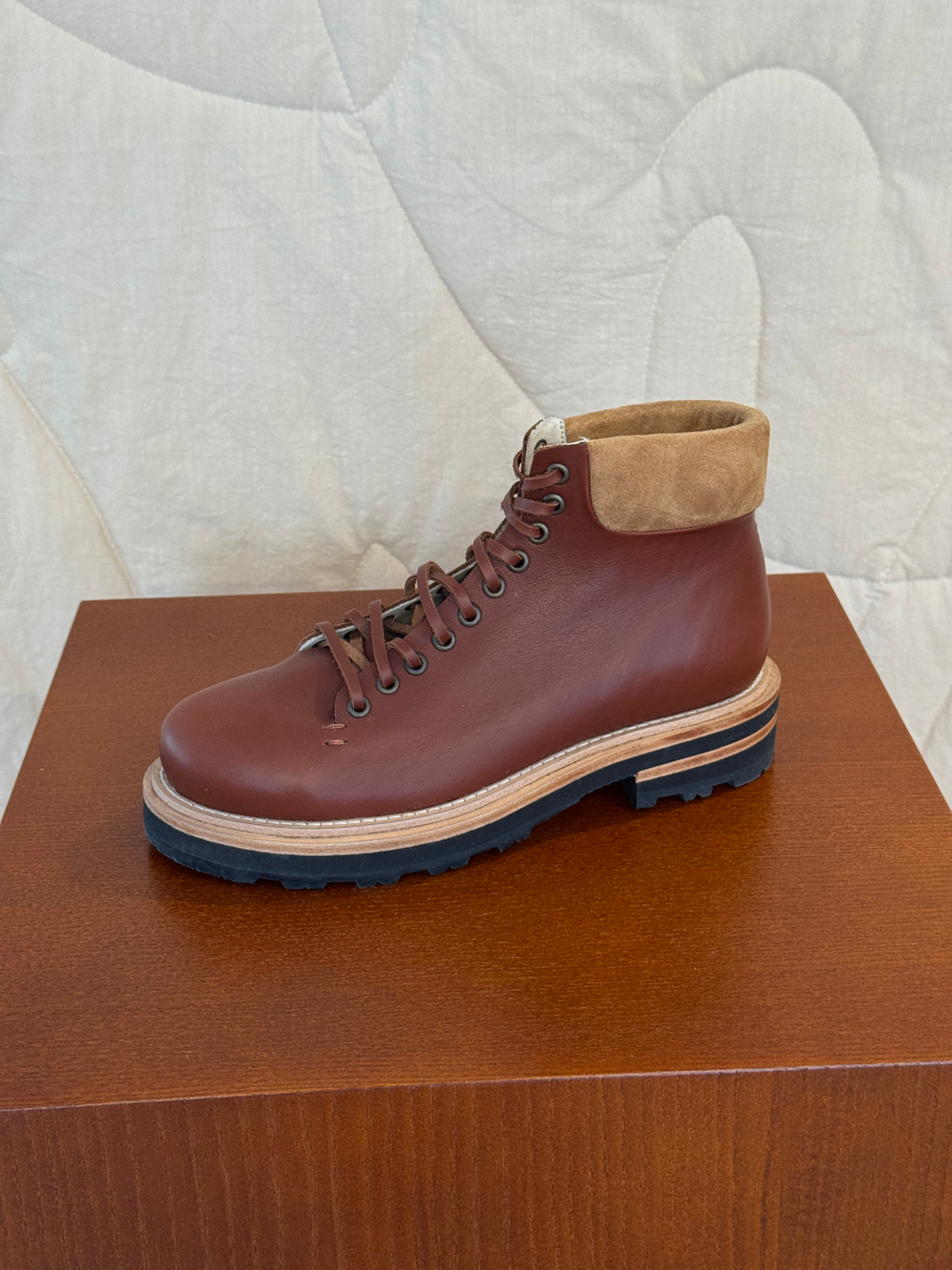 Для хайкеров KARPOV мы использовали премиальную кожу растительного дубления Нидерландской фабрики, использующей передовые технологии в своем производстве и отмеченной золотой медалью отраслевого сообщества.