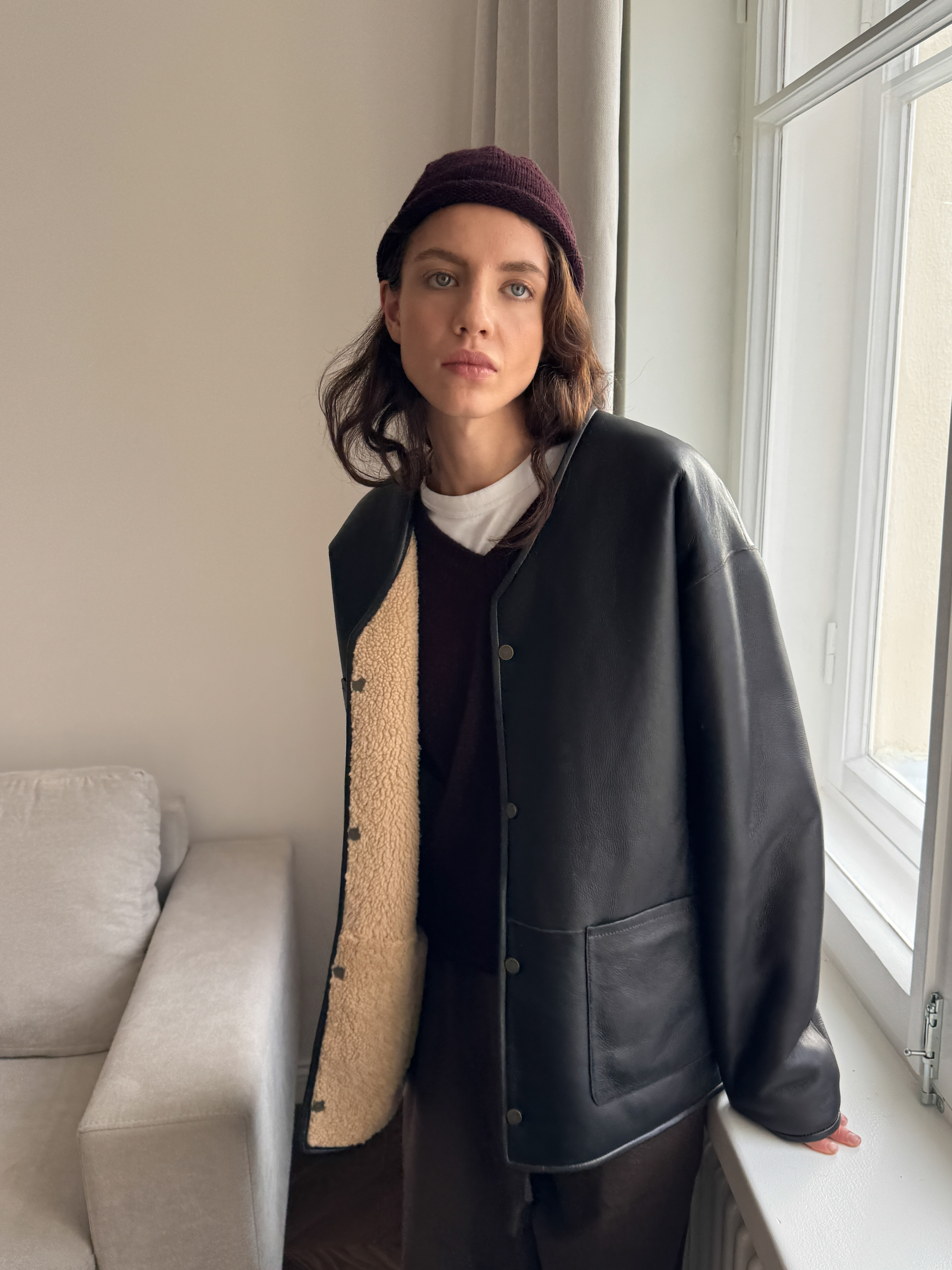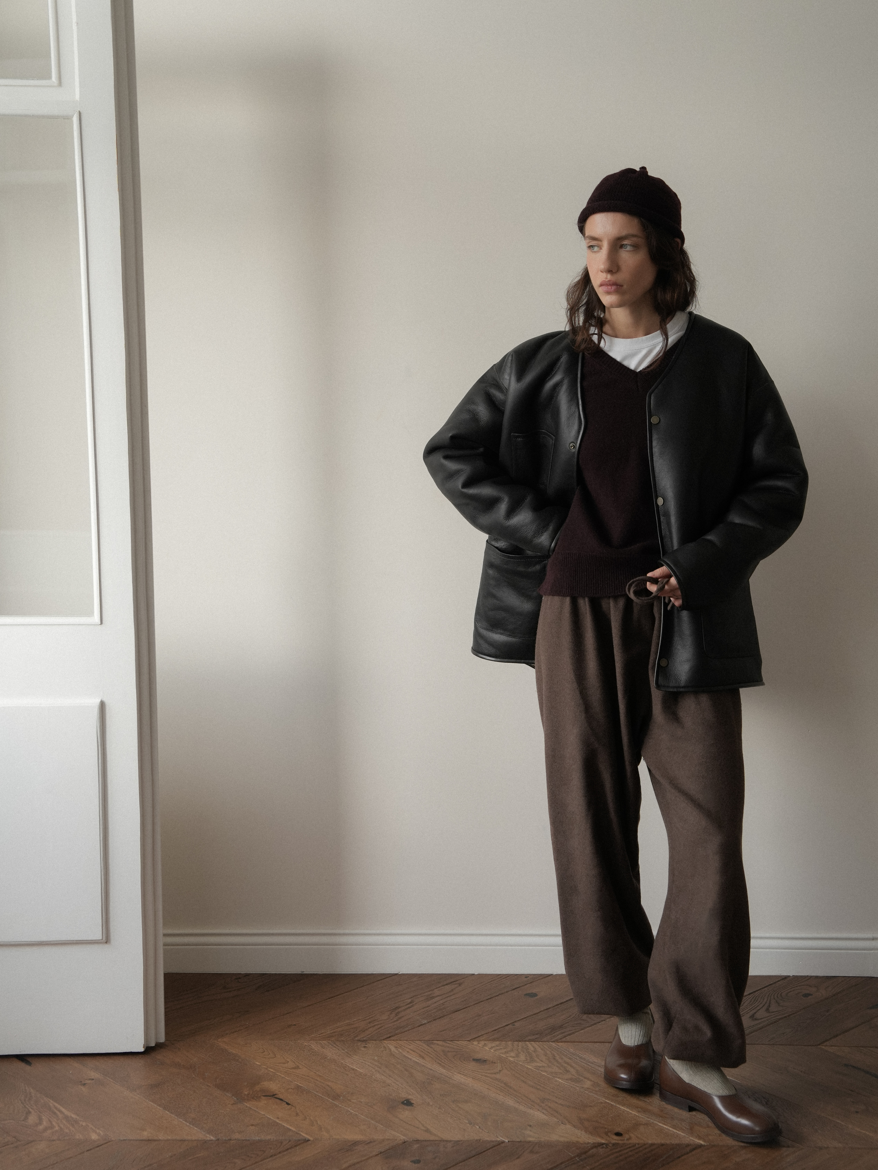 Связана из тёплой, пластичной шерсти: держит форму, мягко прилегает и комфортно согревает. Универсальный силуэт подходит каждому и собирает образ в спокойный, ремесленный акцент Loom.