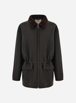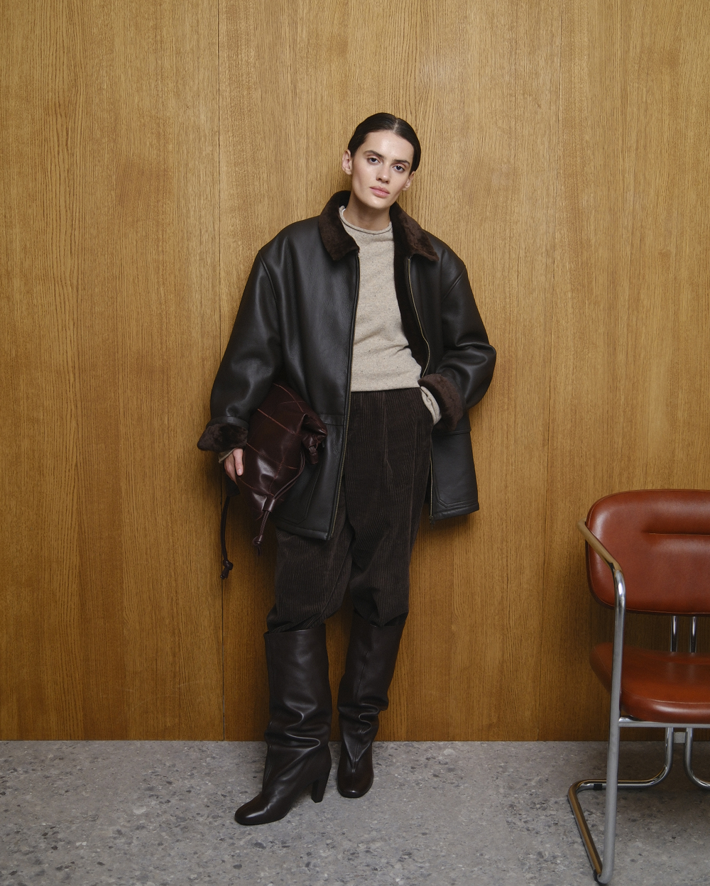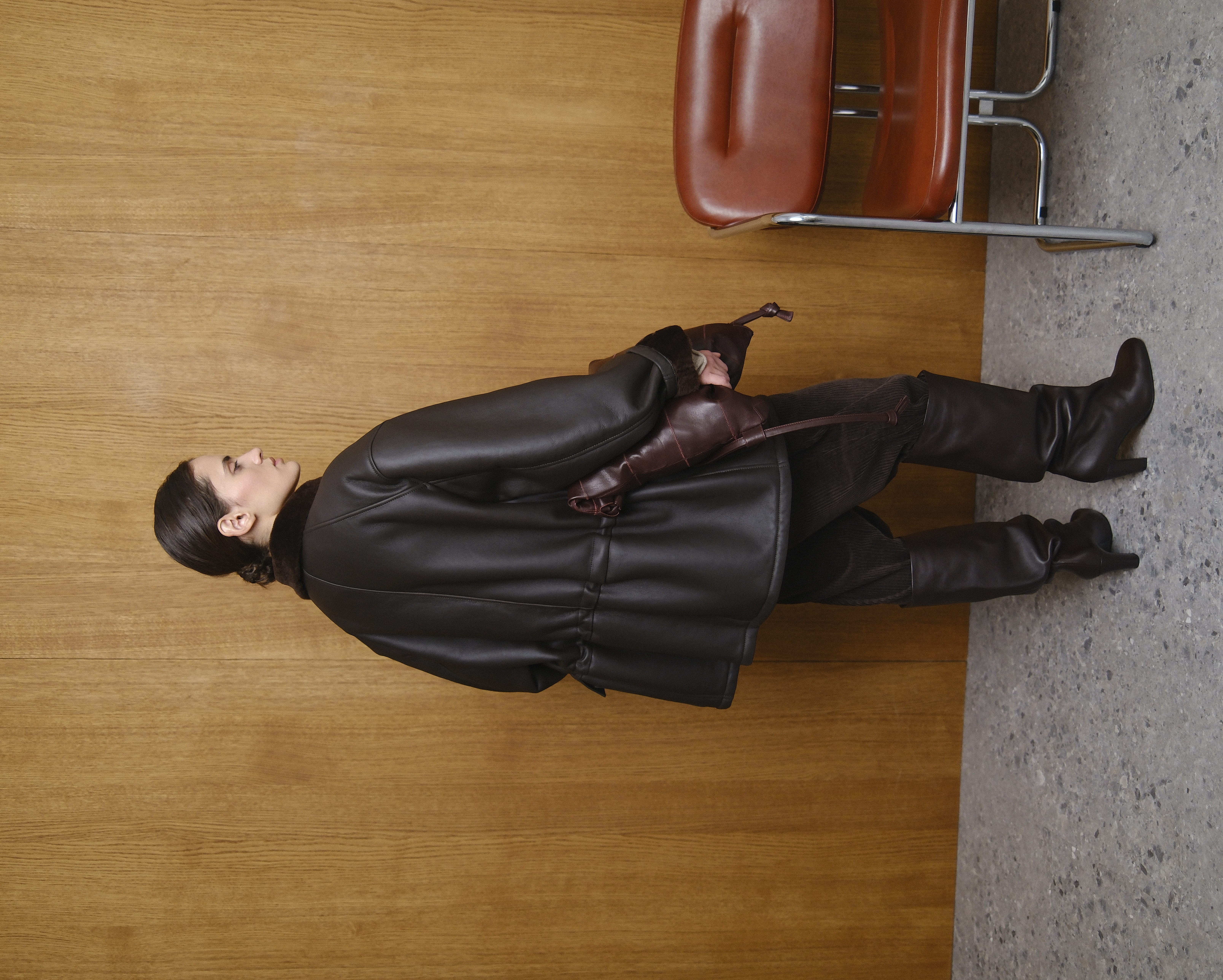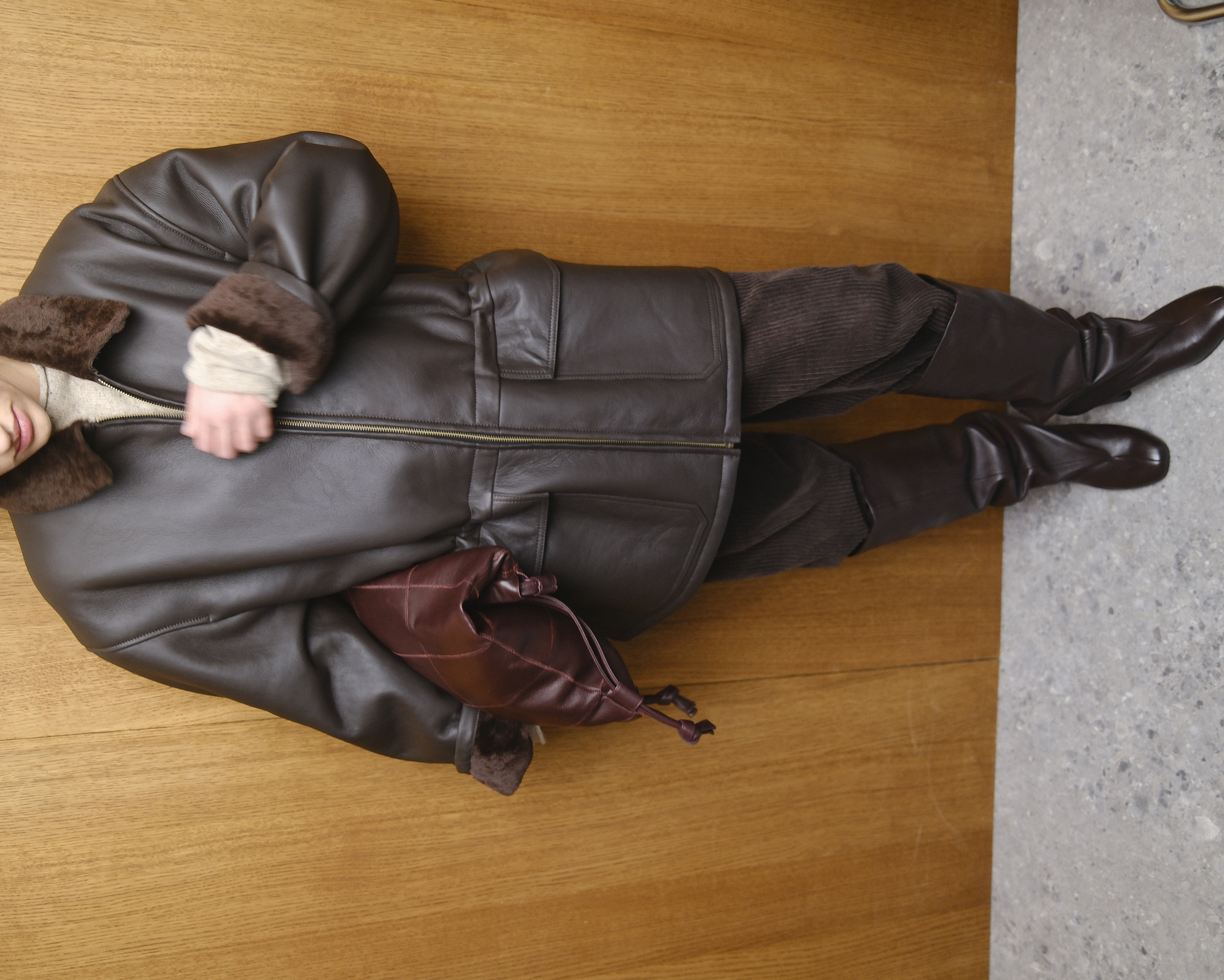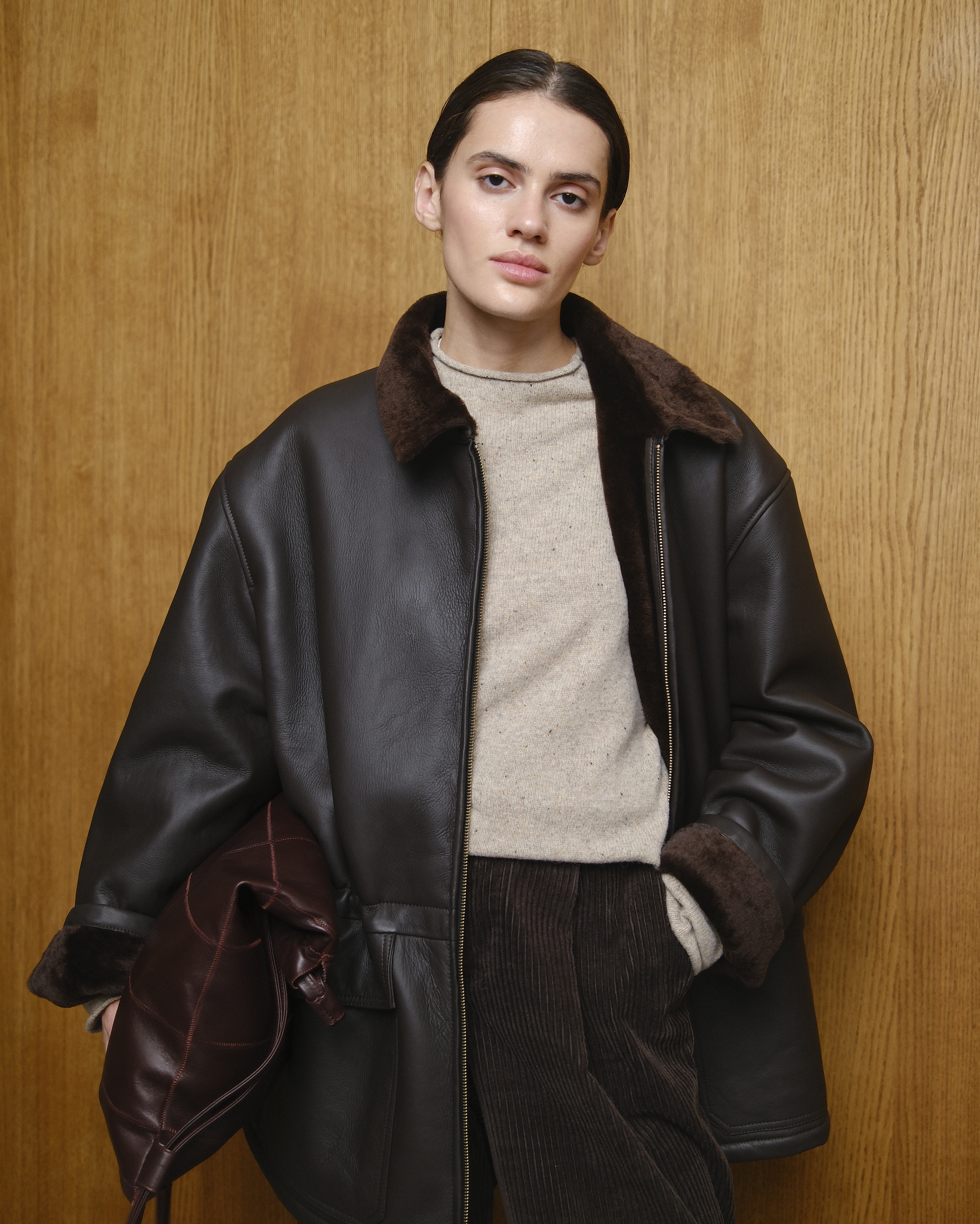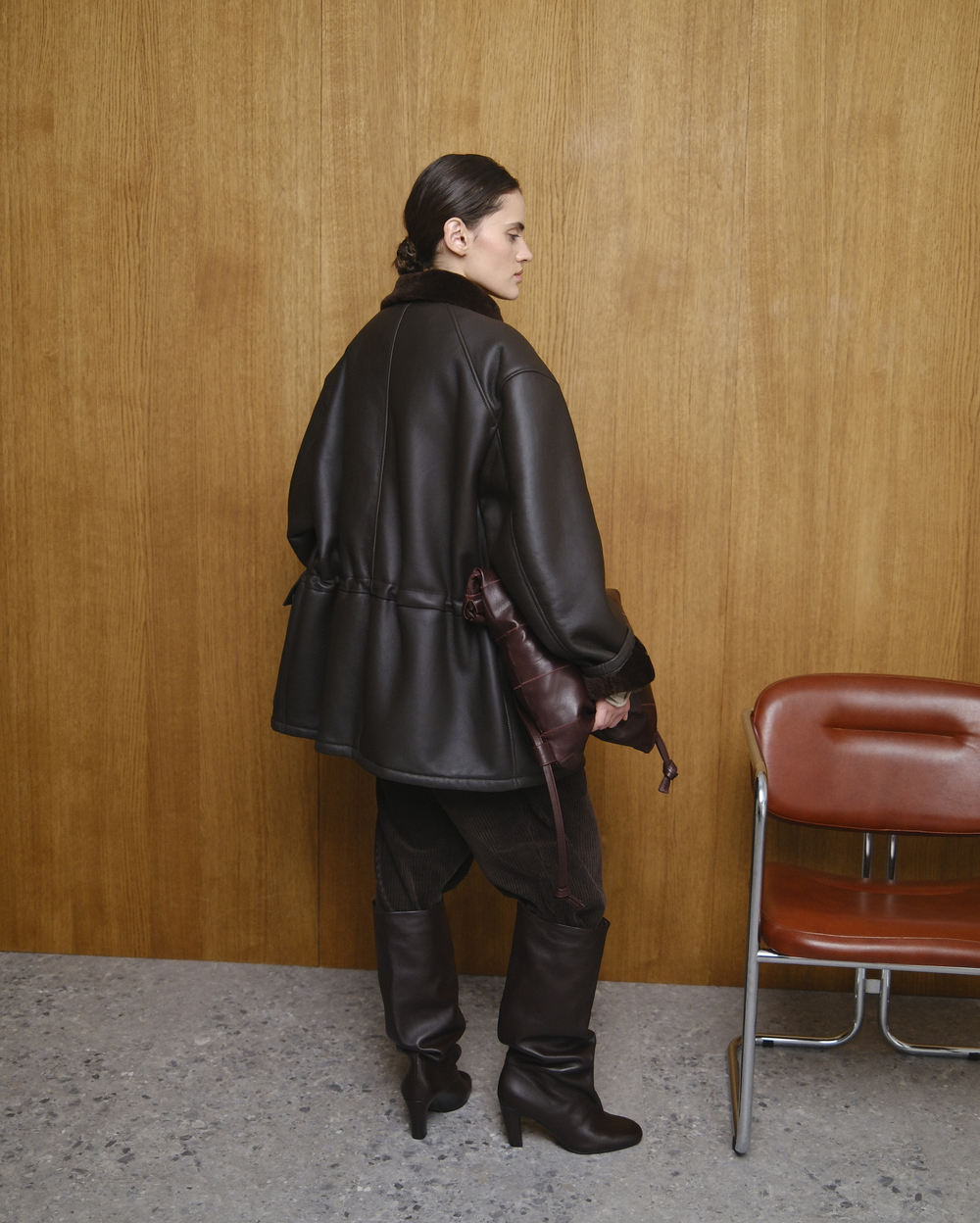 Мы сохранили ДНК первоисточника: свободный силуэт, который можно корректировать кулиской на талии, объёмные карманы, и выразительный отложной воротник, подчёркнутый мягким мехом.