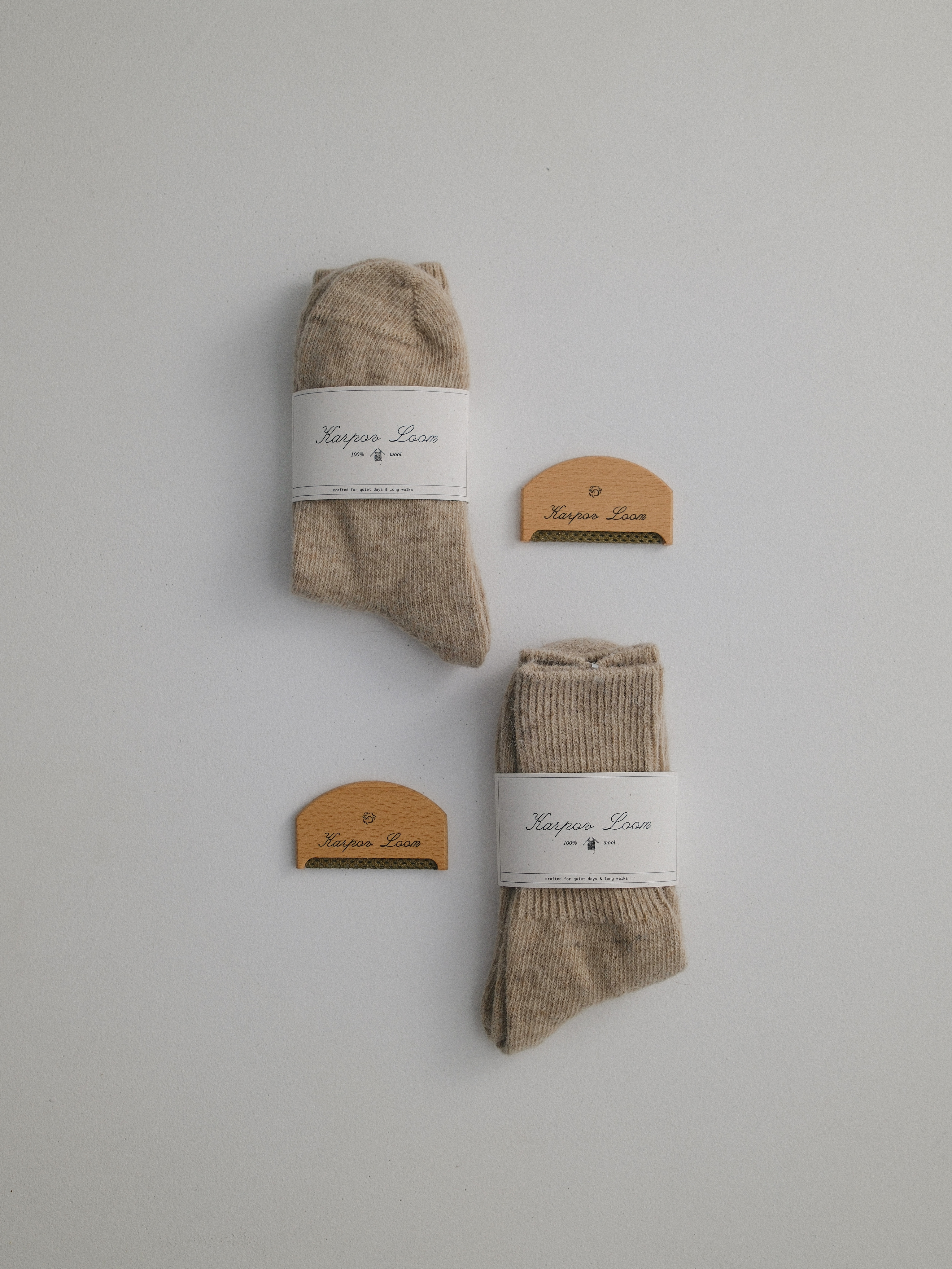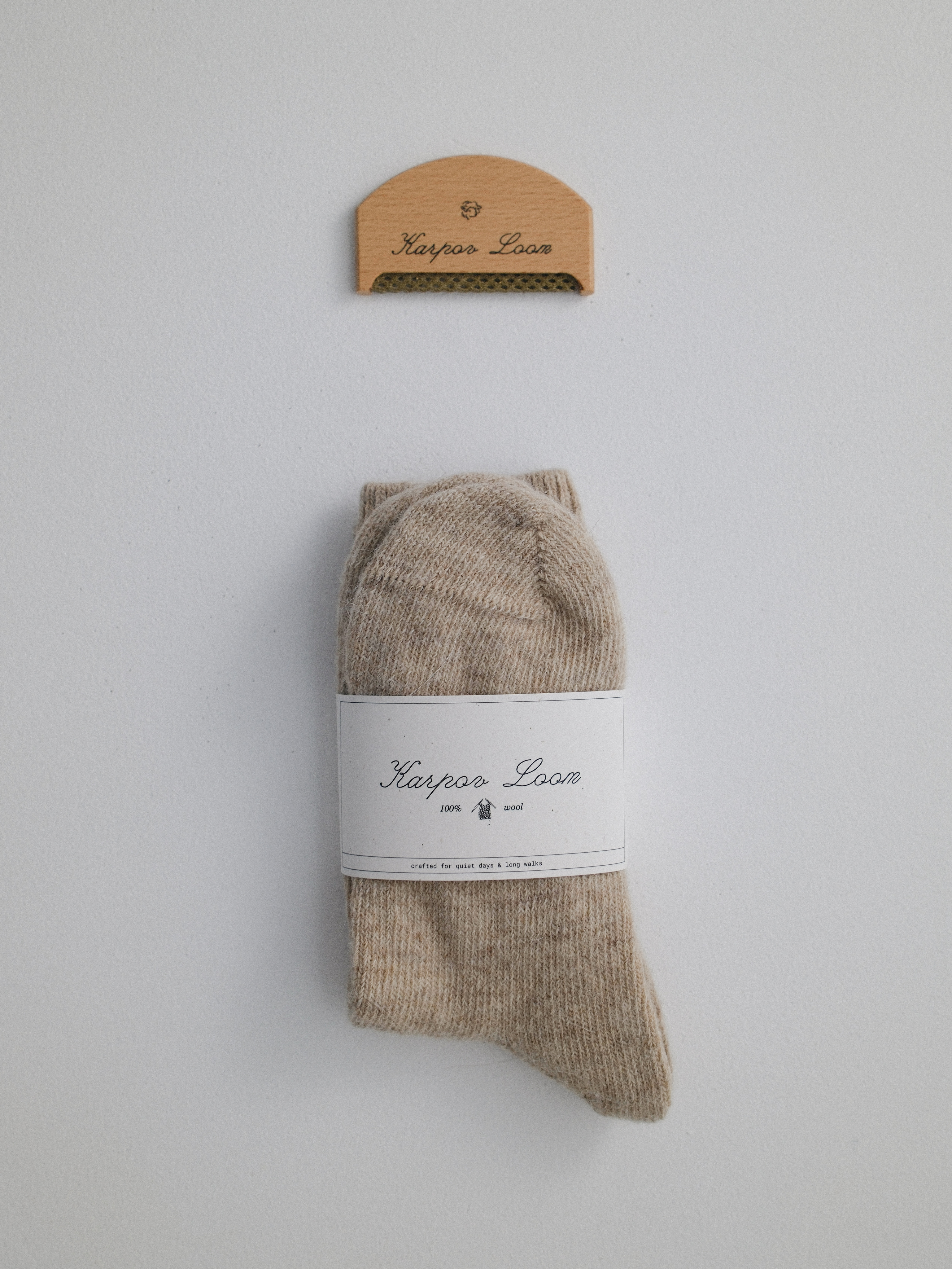 Тёплый, согревающий аксессуар линии Loom, связанный с заботой и уважением к ремесленной традиции. Носки из 100% натуральной шерсти — мягкие и по-настоящему согревающие.
